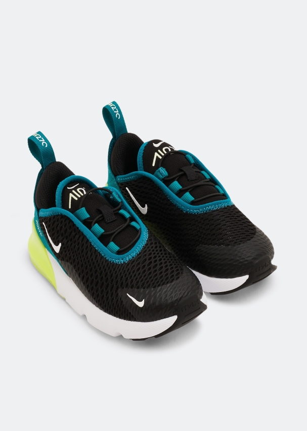 امنحوا طفلكم الراحة المثالية طوال اليوم مع هذا السنيكرز خفيف الوزن من نايك. يستند على وحدة "إير 270" ضخمة ويتميز بجزء علوي منسوج ومسامي، نعل خارجي مطاطي للثبات، شريط سحب لارتداء وخلع الحذاء بسهولة وتوسيد رغوي شفاف.