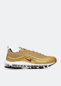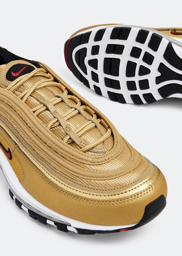 احتفالاً بالذكرى الخامسة والعشرين لنمط إير ماكس 97 الشهير، تُعيد نايك تقديم الحذاء بالألوان الذهبي المعدني، الأسود، الأبيض و"يونيفيرستي ريد". يتميز بطبقات جلدية بنمط مموج، وحدة "إير ماكس" وشعار السووش الشهير باللون الأبيض للمسة نابضة بالحياة.