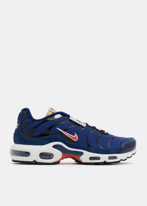 اختر لمسة أنيقة بنمط ريترو من نايك مع سنيكرز إير ماكس بلس إس إي إيه إم آر سيبلون أزرق داكن على قاعدة من اللون الأسود مع تفاصيل برتقالية اللون معاكسة مع شعار إيه إم آر سي على النعل الأوسط.